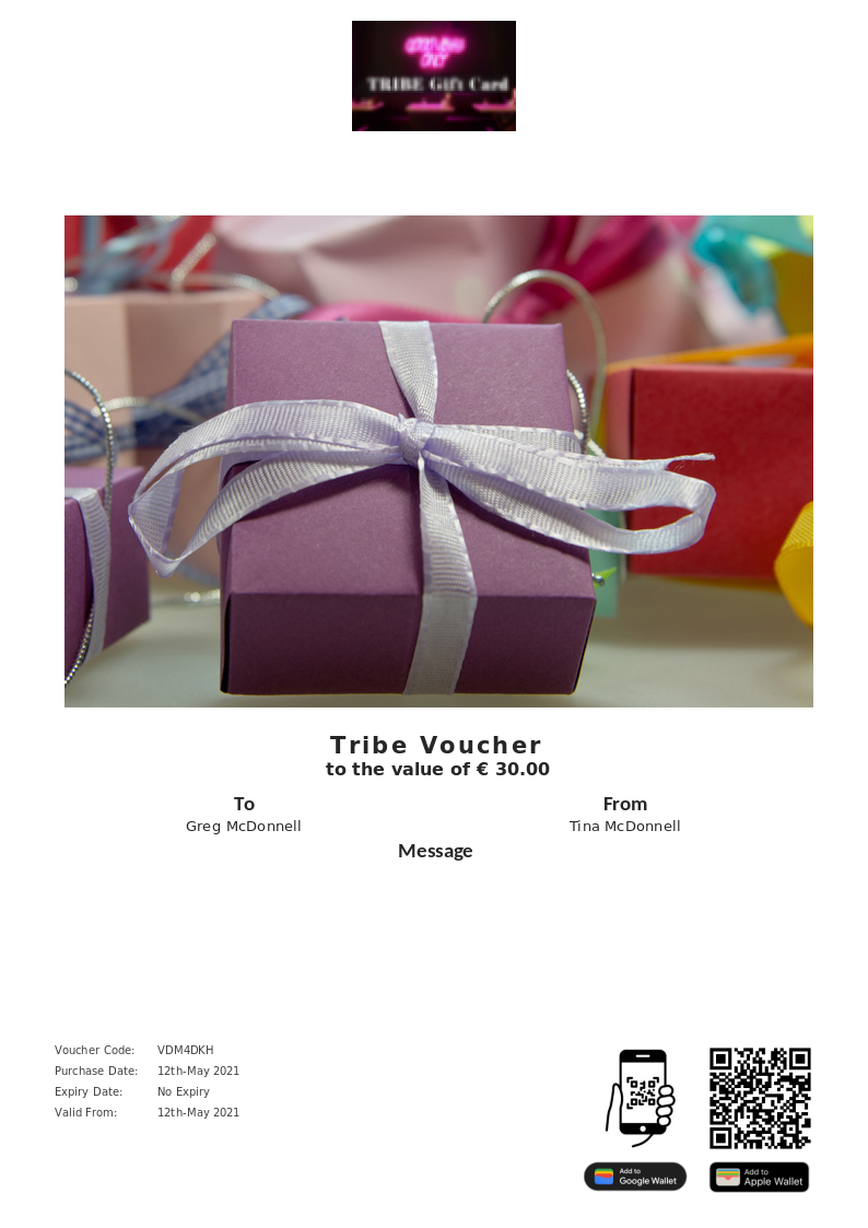 Tribe allows you to purchase instantly printable gift vouchers, special offers and tickets using the Voucher Connect platform.